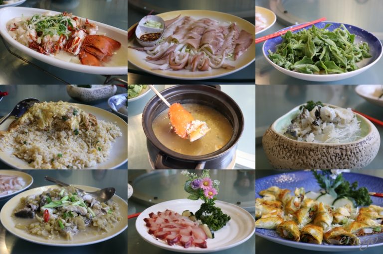 到澎湖一定要選一家海鮮餐廳大快朵頤,位於海鮮餐廳林立的海埔路上,合苑餐廳是這趟抵達澎湖的第一餐,新穎乾淨的店面及舒適用餐環境,提供多人套餐NT400起,相當適合家庭或團體用餐。這天享用的海膽炒飯、清蒸龍蝦、海鱺魚生魚片、海鮮粥、烏魚子酥、河...