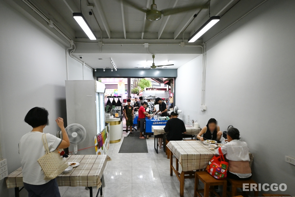 店內沒有特別的裝潢,就是簡單的桌椅,但這也正是體驗當地生活的一部分。在這裡用餐,你可以感受到曼谷最真實的日常,聽著泰文還有各國語言交談聲,聞著食物的香氣,這種感覺真的蠻特別的。
