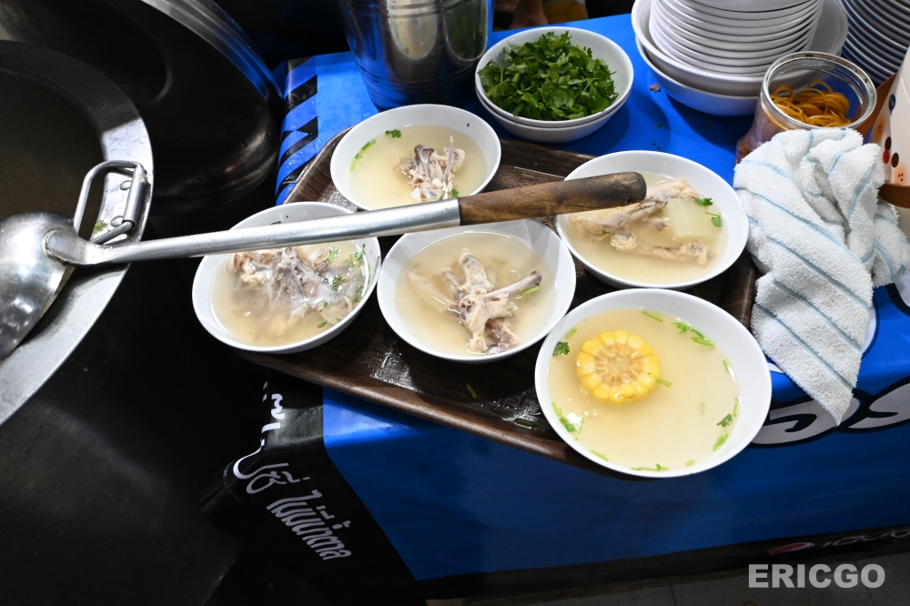 除了海南雞飯本身,隨餐附贈的清湯,味道清淡卻充滿雞肉的鮮甜,剛好可以解解口中的油膩感,非常非常好喝!