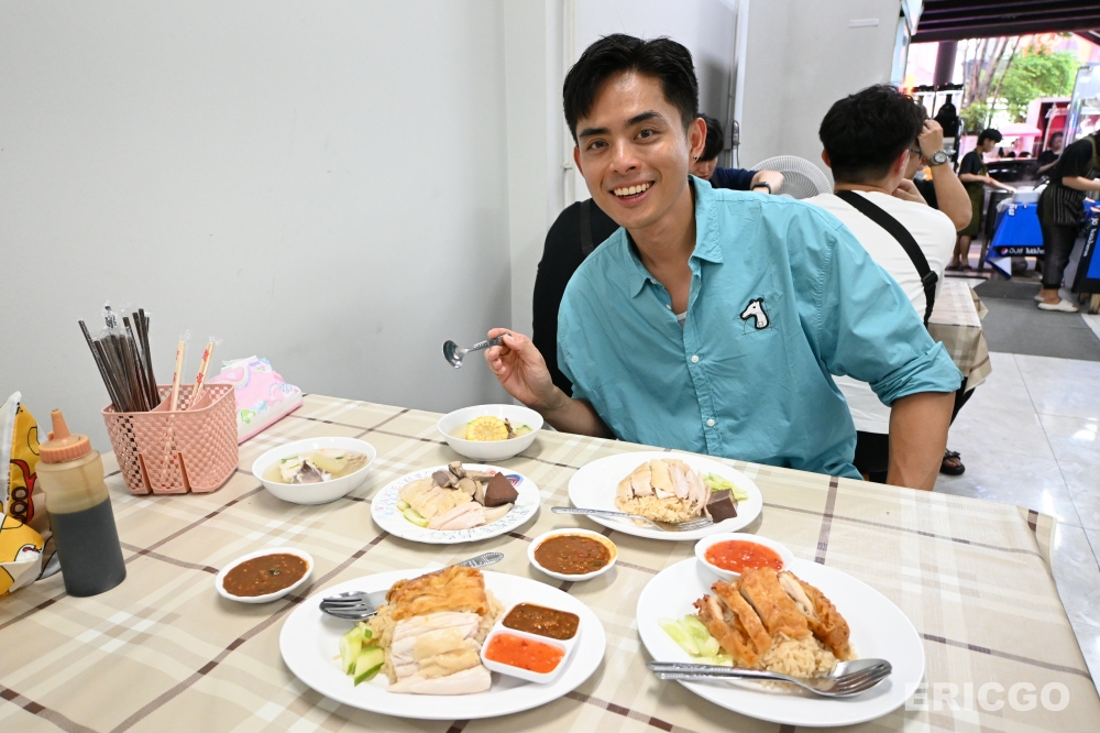 經典必點的海南雞飯,有分S/M/L大中小份,還有白雞、炸雞、綜合等選擇,一份60泰銖起跳,跟我依樣食量比較大的話可以一次點兩份吃個過癮!
