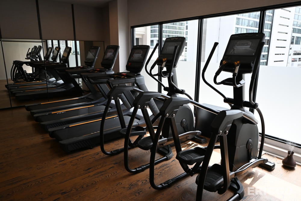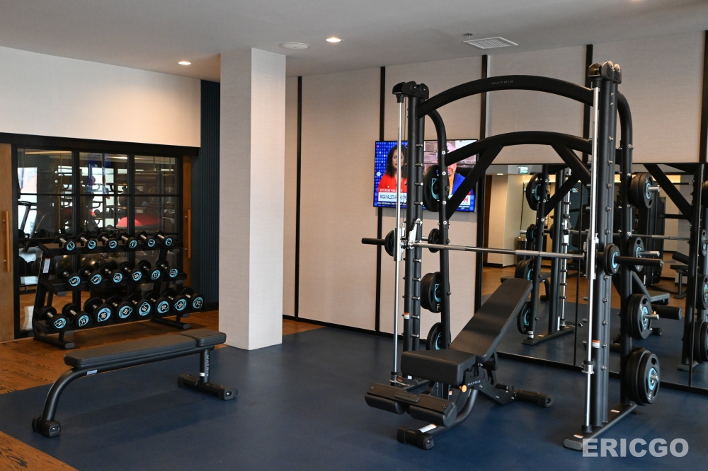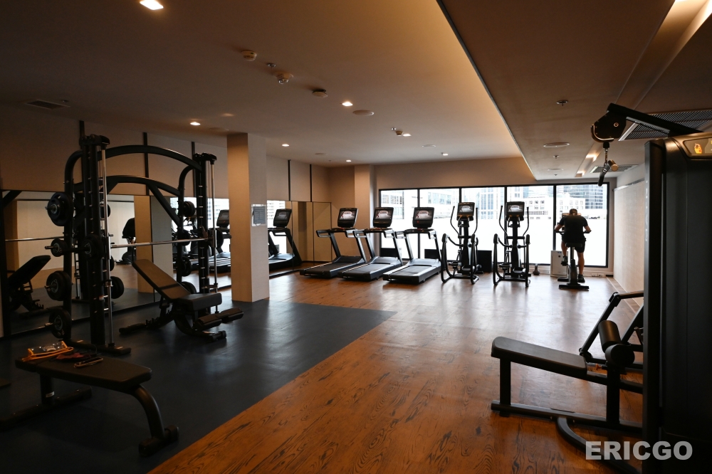 Four Points by Sheraton Bangkok, Sukhumvit 22 健身房位於11樓,我很喜歡位於高樓層的健身房,一定會找時間抽空去運動一下。健身房內設備相當完整,跑步機腳踏車等有氧器材、史密斯機、重量訓練、瑜伽空間,全新設備使用起來就是棒。