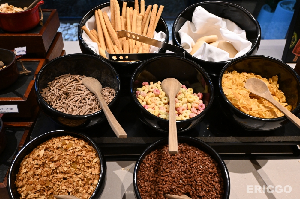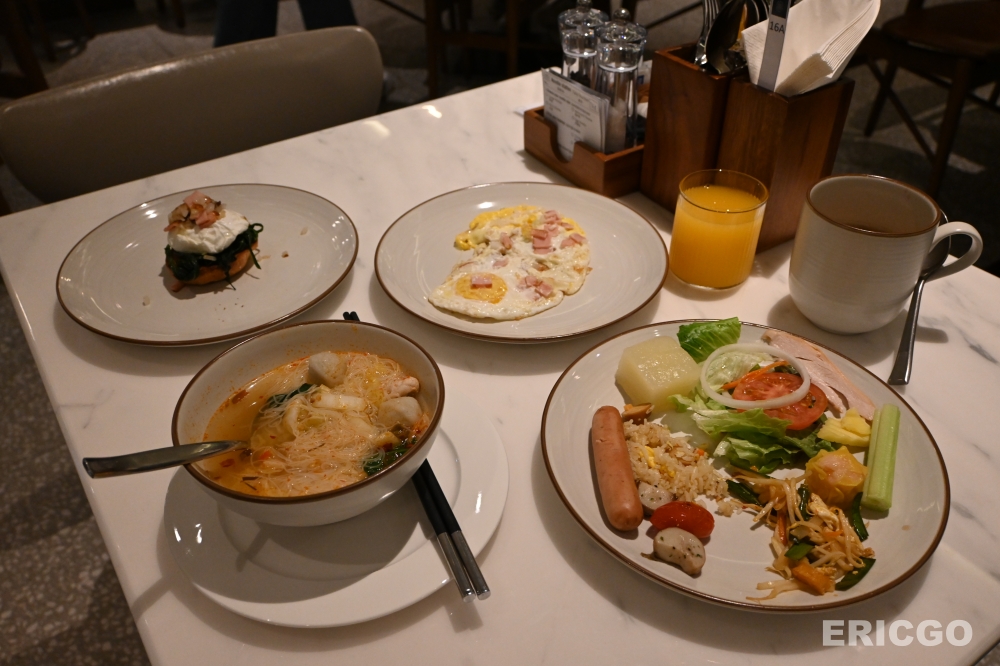 除了基本的西式餐點,另外提供中式點心、泰式特色菜餚餐點,現點現做的泰式麵點及各類雞蛋料理。
