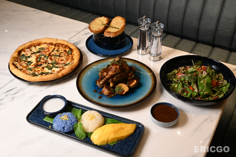 The Mesh Bangkok 推薦菜單包括:House Garden Salad招牌沙拉、Margherita Pizza瑪格麗特披薩、Crock Pot French Onion Soup慢燉法式洋蔥湯、Baked Half Baby Chicken烤春雞半隻、Mango Sticky Rice泰式芒果糯米飯、Mesh Punch特調無酒精水果雞尾酒。、享受音樂、享受美食,是在曼谷最美好的夜晚時光。