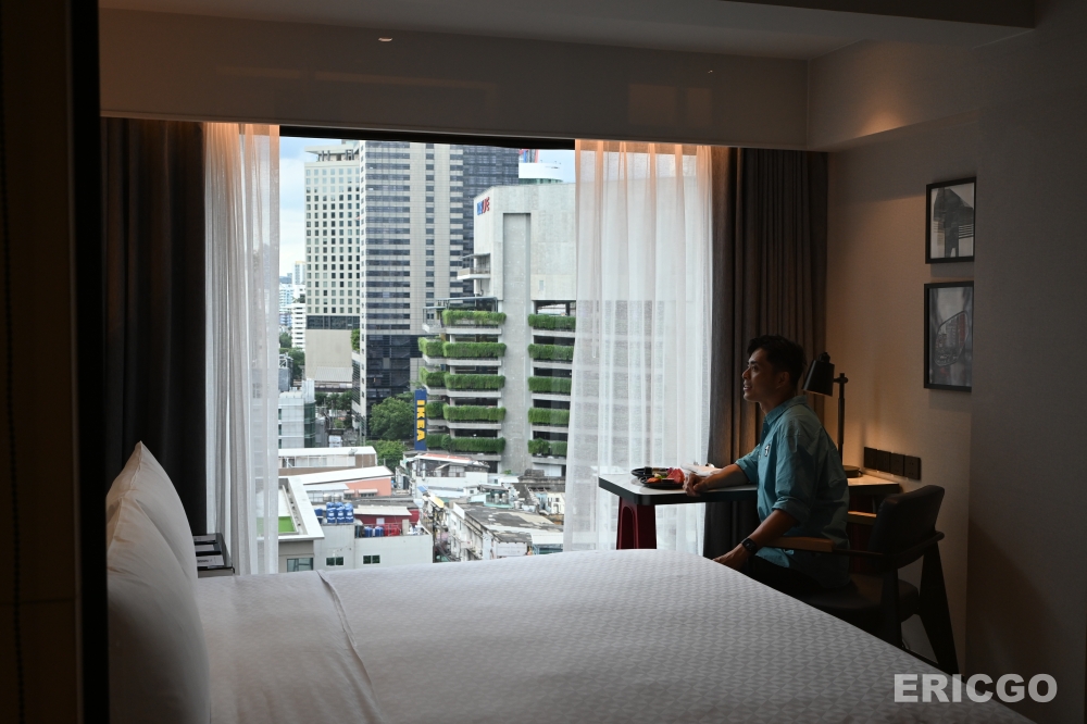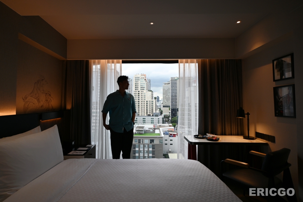 Four Points by Sheraton Bangkok, Sukhumvit 22 曼谷素坤逸22號福朋喜來登飯店客房風格延續大廳的質感及簡約現代設計風格,以泰國曼谷攝影集神話元素添加空間亮點。這次我入住的是Deluxe King (Deluxe Guest room, 1 King, City view),King size大床、享有城市景觀,約22平方公尺空間適中。
