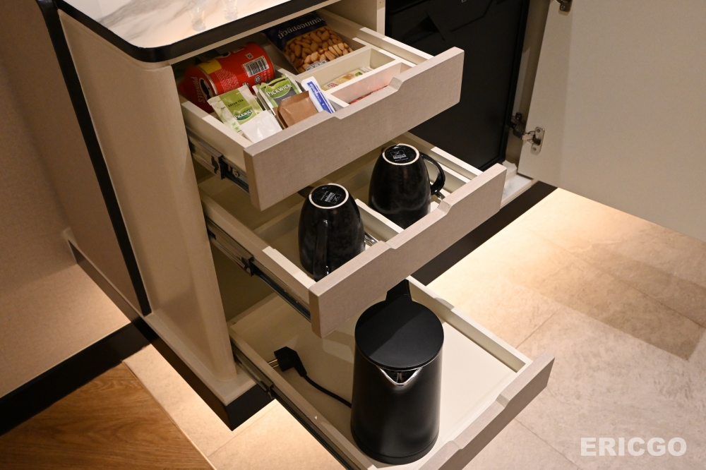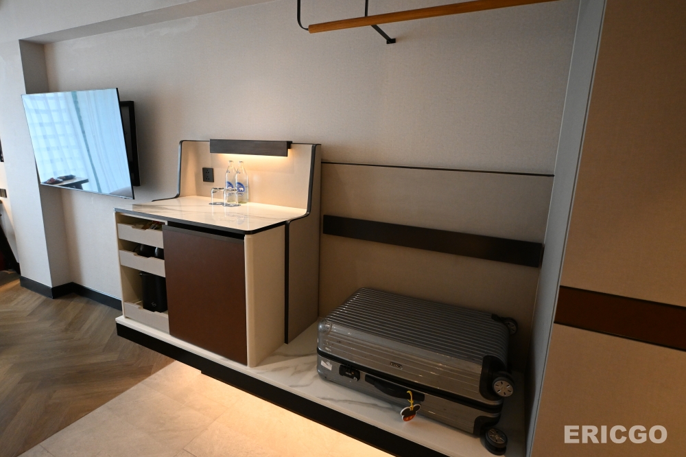 玄關處設置衣櫃、保險箱、開放式衣架、行李空間,Mini Bar提供免費瓶裝礦泉水、咖啡茶包、熱水壺,冰箱備有多款付費飲品。