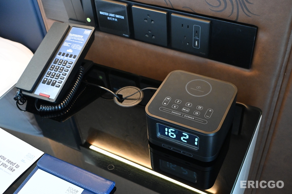 Four Points by Sheraton Bangkok, Sukhumvit 22 符合現代科技需求,床頭側邊及書桌旁設有多個充電插座,包括USB及Type C孔,並備有支援無線手機充電的藍芽音響,無論是休閒或商務旅客都很適合!