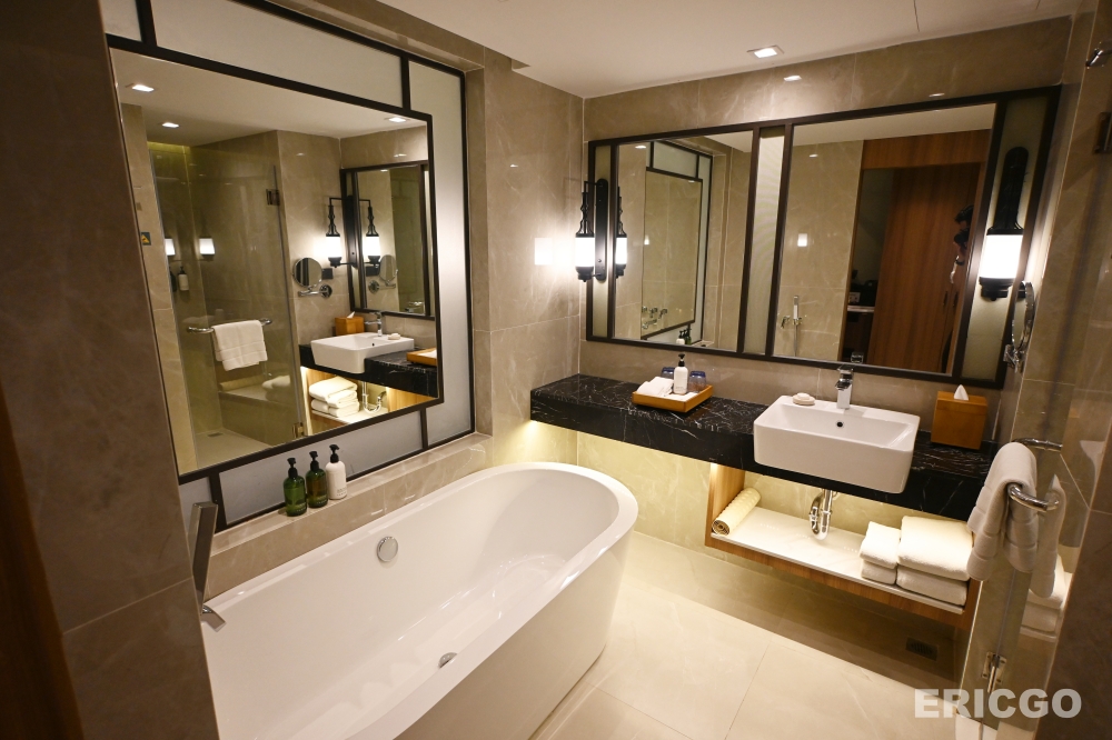 衛浴空間乾濕分離,設有獨立淋浴間與浴缸,非常加分。備品齊全,水壓穩定,熱水充足,在旅途勞頓後能好好享受一個放鬆的沐浴。(Agoda優惠房價查詢
