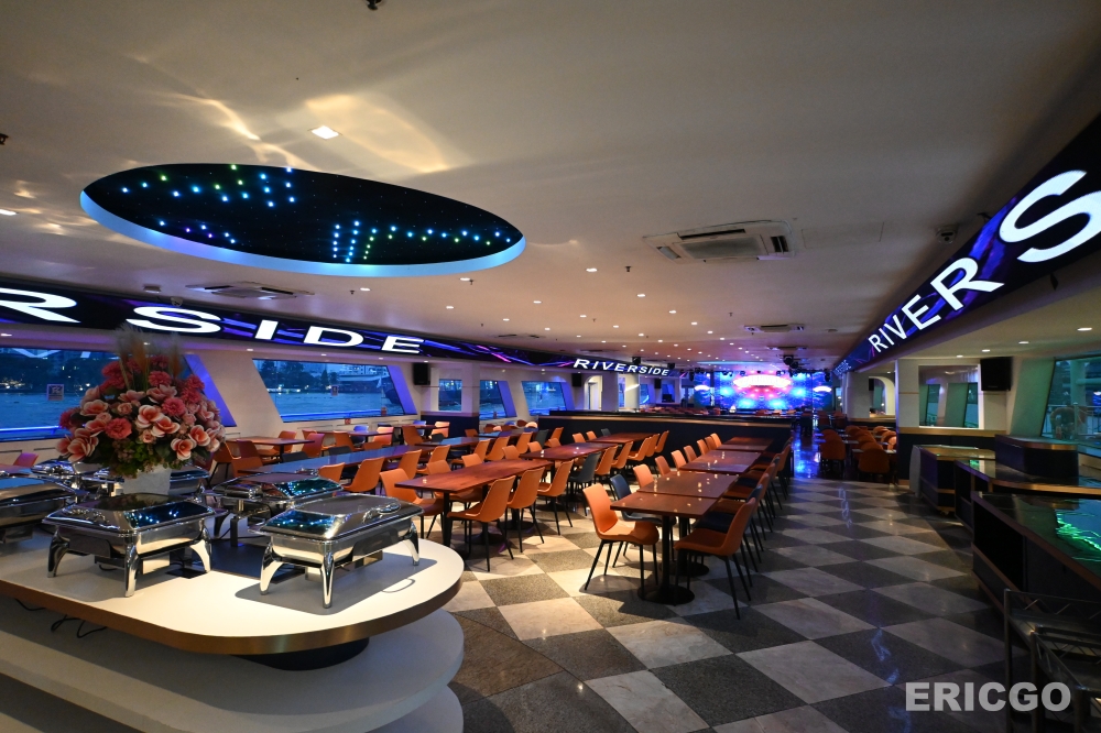 一旦踏上Riverside Carnival Cruise河畔嘉年華遊輪,就直接進入一個充滿歡樂與視覺饗宴的世界。Riverside Carnival Cruise河畔嘉年華遊輪分為兩層樓,室內跟室外座位,天氣不下雨就會在露天的上層甲板享受美好旅程,從豐盛的餐點到沿途的河畔風光,每一個環節都提供最棒的體驗。曼谷熱鬧迷人的夜晚即將展開!