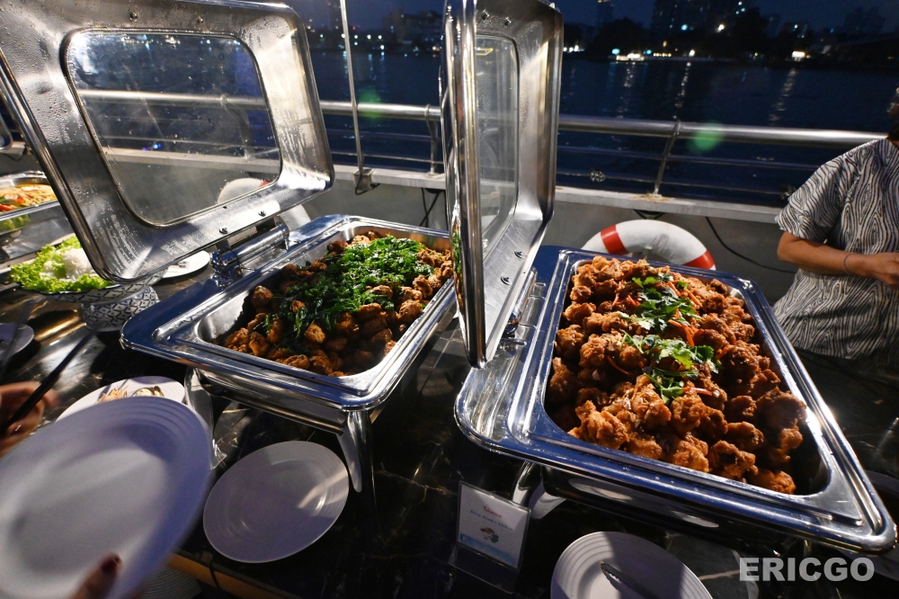 船上提供的是豐盛的國際自助餐,融合了泰式、西式等多樣化的菜餚,當然少不了經典的泰式美食,口味地道,能滿足對泰國美食的期待。