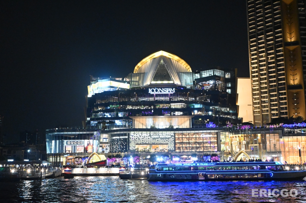 昭披耶河河的夜景是曼谷最迷人的風景之一。隨著遊輪緩緩前行,兩岸的著名地標在燈光的點綴下,展現出與白天截然不同的魅力。從河濱夜市出發,一路往北,經過Iconsiam,沿途經過各大地標!