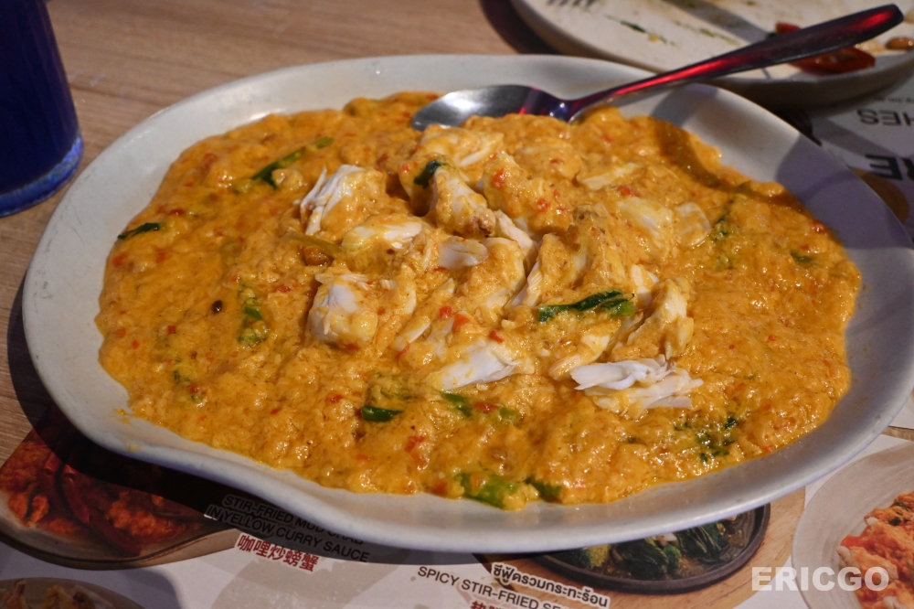 說到Savoey,如果沒點「招牌咖喱蟹」,那簡直是入寶山空手而回!這道菜之所以能成為我的心頭好,甚至超越了其他家知名咖喱蟹,原因無他——它是一整盤「滿滿已經剝好的蟹肉」!各位!你沒聽錯!完全不需要動手剝殼,就能優雅地享受肥美鮮甜的蟹肉,沾滿那濃郁到化不開的咖喱蛋香。那金黃色的醬汁,混合了咖喱的香料味、雞蛋的滑順、以及蟹肉的鮮甜,每一口都是天堂般的享受。單吃過癮,搭配泰國香米飯更是絕配,保證讓你扒飯扒到停不下來!這道菜的貼心程度,直接讓它在我心中榮登Savoey必吃第一名。