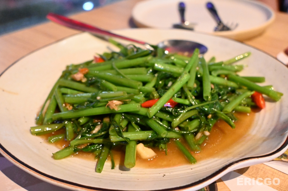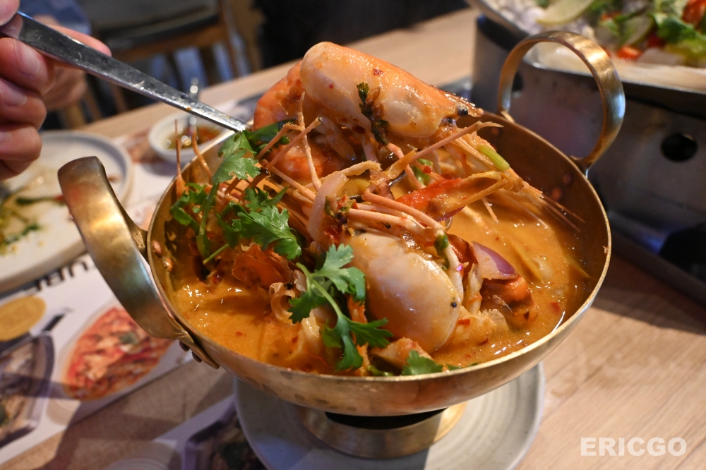 大河蝦冬陰功蝦湯: 他們家的冬陰功湯,辣度拿捏得恰到好處,不會過於嗆口,卻能讓你全身暖和起來。湯頭濃郁,充滿了香茅、檸檬葉、南薑等香料的芬芳,再搭配碩大肥美的大河蝦,蝦肉Q彈鮮甜,吸飽了湯汁的精華,每一口都是極致的享受。這道湯品,絕對是開胃、暖胃、又令人回味無窮的選擇。