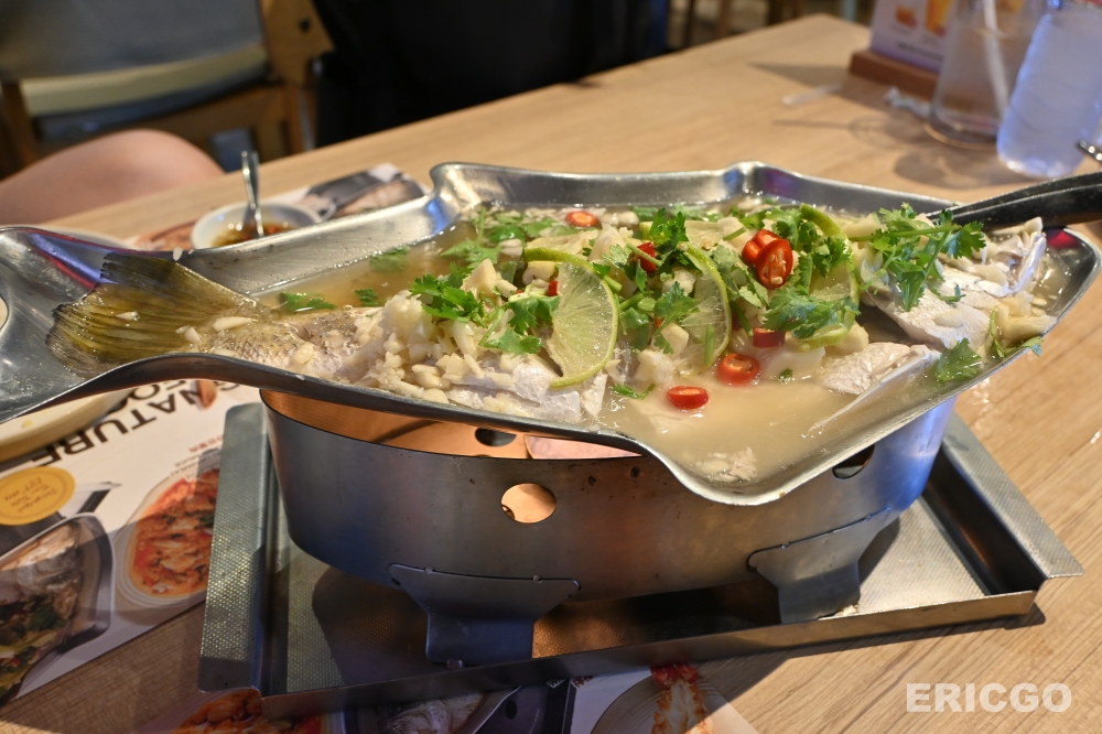 檸檬魚: 泰國的檸檬魚,以其清爽的酸辣口感聞名。Savoey的檸檬魚,魚肉鮮嫩細緻,沒有一絲腥味,浸泡在酸甜微辣的檸檬湯汁中,搭配蒜末和辣椒,味道層次豐富。魚肉的鮮美與檸檬的清香完美結合,一口接一口,讓人欲罷不能。吃多了重口味的咖喱和冬陰功,來一道檸檬魚,絕對能起到解膩提味的效果。