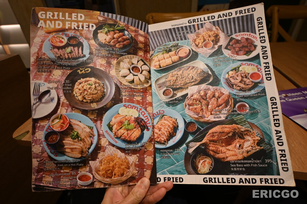 來到Somtam Nua,有幾道菜是絕對不能錯過的!這家店也是從我10幾年前來曼谷吃到現在,每次帶朋友來都讚不絕口,菜單上有超多選擇,青木瓜沙拉跟炸雞是兩大必點,吃再多次都不會膩,真的超推薦的啦!