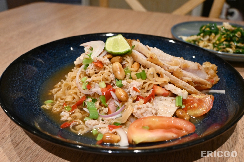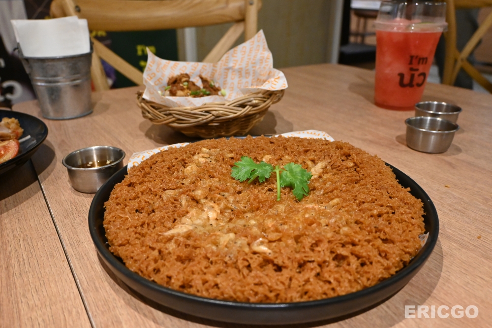 打開菜單就會發現其實他的菜色餐點非常豐富都是一些很常見的家常泰式小吃,例如松阪豬泰式炒泡麵、泰式東北香腸、炸蝦餅、炒飯等等,隨便點隨便好吃。
