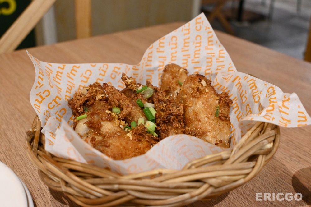 這家的炸雞也是招牌中的招牌,自詡為曼谷NO.1的炸雞,完全不輸給任何一家專賣炸雞的店!雞肉醃製得非常入味,外皮炸得金黃酥脆,咬下去還能聽到「咔滋」的聲音,裡面的雞肉卻非常鮮嫩多汁,真的好香好好吃。搭配青木瓜沙拉一起吃,簡直是天作之合,口感的對比讓味蕾更加豐富。一份的份量也不會太多,很適合兩三個人分食,喜歡炸雞的人推薦你直接點兩份,真的太好吃了!