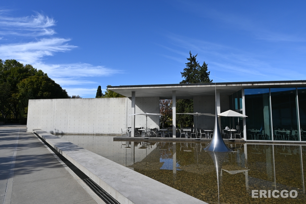 Château La Coste 的園區設計,名符其實地將建築、藝術與自然景觀融為一體,宛如一場藝術盛宴。日本建築大師安藤忠雄在這裡留下了多個標誌性作品,包括入口處的藝術中心、圖書館及地下酒窖。他慣用的清水混凝土、幾何線條與光影運用,在這裡與普羅旺斯的陽光和諧共存,創造出極具禪意的空間感。走進這些建築,會感受到一種簡約樸實卻又豁然開朗的獨特體驗。