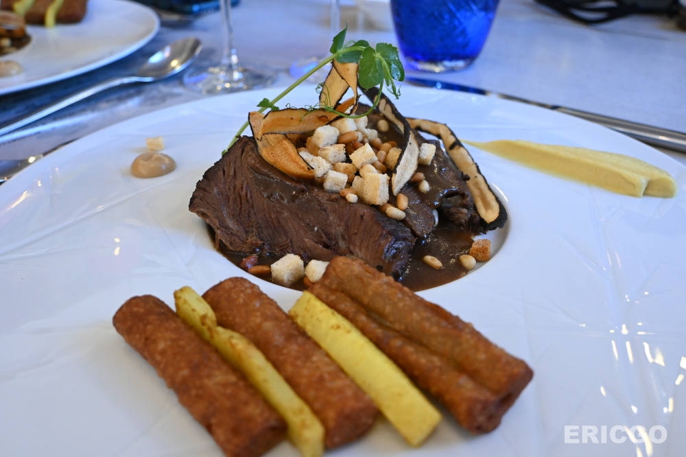 這裡主打普羅旺斯地中海風味料理,食材新鮮,烹調手法精緻。他們擁有一個非常棒的酒窖,收藏了許多隆河谷地的精品葡萄酒,如果你是葡萄酒愛好者,這裡絕對能讓你驚艷。當天品嚐一道當地特色的慢燉牛肉,肉質軟嫩入味,可以的話再搭配一杯紅酒,那種味覺的層次感,確實非常厲害!