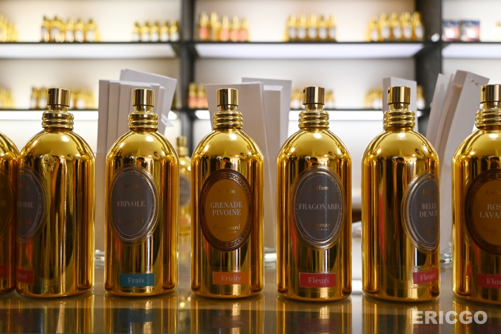 品牌故事與產品展示,導覽的最後會引導至 Fragonard 的專賣店,這裡展示了品牌最新的香水、香皂、身體乳等產品。導覽員不會強制推銷,但會鼓勵大家試聞並選購自己喜歡的香氛。這裡的產品種類齊全,價格也相對實惠,非常適合選購伴手禮。