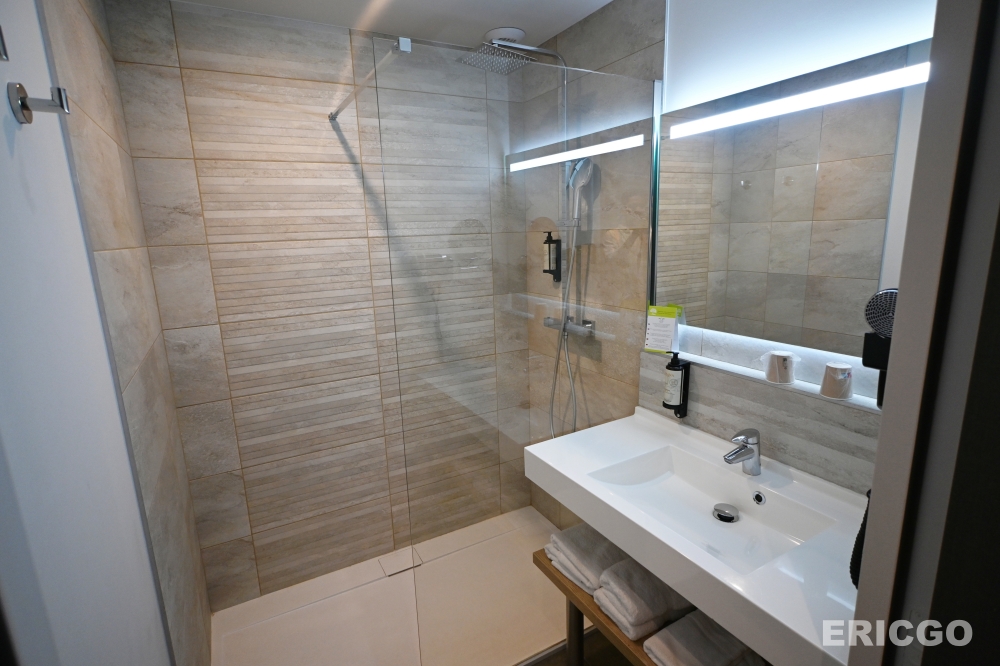 浴室空間適中,乾濕分離,有獨立的淋浴間及廁所。 (Agoda優惠房價查詢)