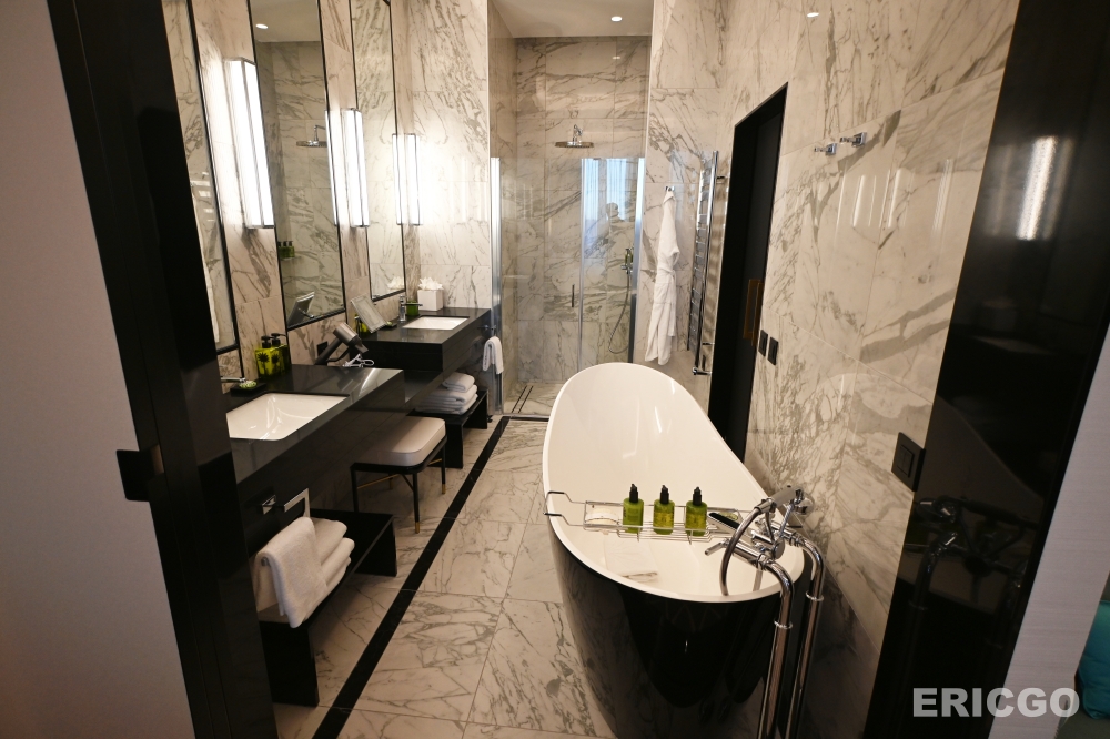飯店提供多種房型選擇,從標準客房、豪華客房到行政套房和頂級套房都有。每種房型都配備了高品質的寢具、智能電視、膠囊咖啡機和精選的迷你吧。浴室也設計得很棒,乾濕分離做得很好,而且淋浴間空間也很大,洗澡起來很舒服。備品選用的香氣很舒服,這些小細節都讓住宿體驗大大加分。如果你預算充足,蠻推薦可以考慮他們的套房,通常會有獨立客廳區及更升級的浴室,空間感更好,住起來會更享受喔!(優惠房價查詢)