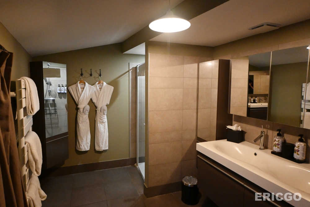 全新開幕的浴室設施,空間也頗大,配備了高品質的洗浴用品。房間內還有迷你吧、咖啡機等基本設施,細節處都考慮得很周到。(Agoda優惠房價查詢)