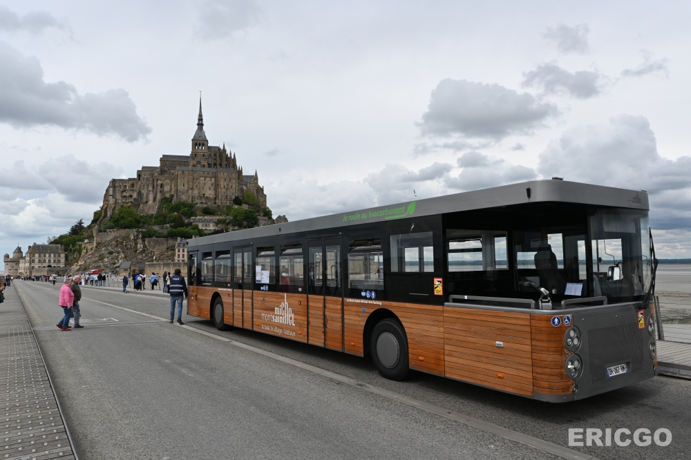不管是自駕或搭車,抵達聖米歇爾山遊客停車場(Mont Saint-Michel visitors’ car park)後,所有人都必須搭乘免費官方接駁車前往聖米歇爾山。