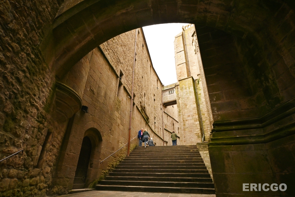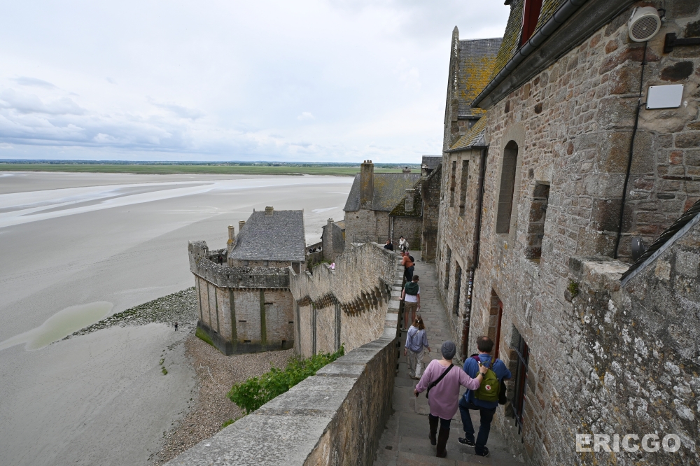 經歷英法百年戰爭的圍牆,也曾讓聖米歇爾山成為一座非常重要的防禦堡壘,沿著城牆走也有另一條道路,回程蠻建議可以從這裡下山,看見不同的風景。