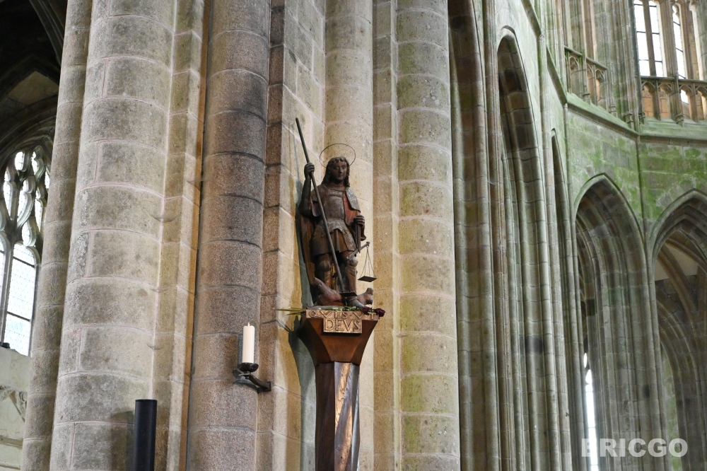 前面有提到,聖米歇爾山一開始其實是因為大天使聖米歇爾(Archangel Michael)托夢給Avranches主教聖奧貝爾(Saint-Aubert),希望他修建一座以大天使聖米歇爾命名的聖殿。從966年建立了第一座教堂,11世紀時增建了四間地下聖堂與一間大型修道院教堂,13世紀時才開始修建這一座被譽為La Merveille“奇蹟“的聖米歇爾修道院。