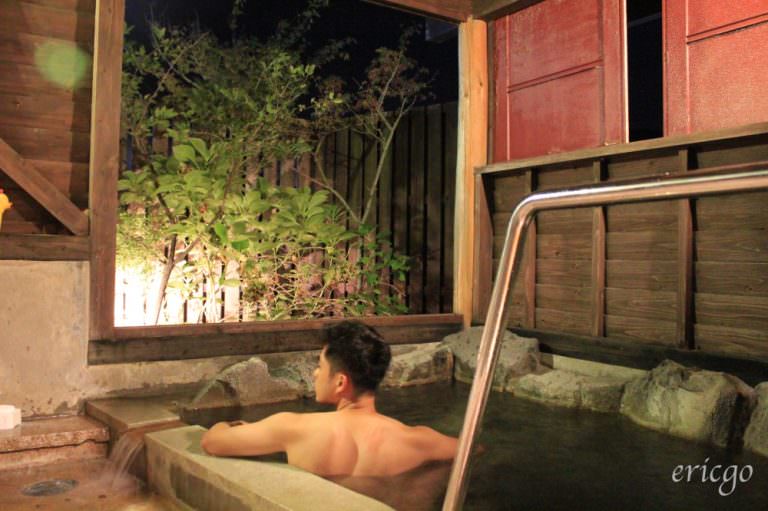 當天晚上我則是前往館外的獨立湯屋。みやま美山飯店的館外湯屋,真的是在館外,必須走出飯店,往停車場旁上坡走一小段。這樣的設置其實很特別,完全是三間依著山坡而建的小木屋,白天風景非常漂亮,晚上人煙稀少相對有點幽暗。戶外湯屋分為:犬飼之湯、轟木之湯、花房之湯,風格都不同,可以隨心挑選。其中,犬飼之湯屬於較大型的露天風呂,最多還可以容納10人。(agoda房價查詢