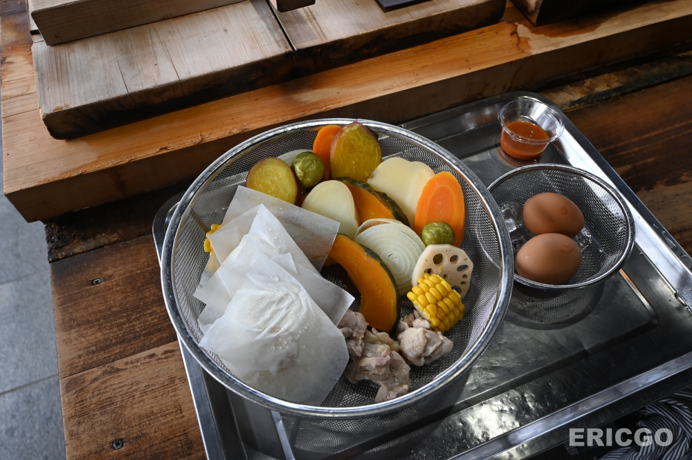 5. 等待與享用:等待時間依食材而異,通常在15分鐘左右。這段時間可以在旁邊休息,時間一到,一樣在工作人員指示下,小心取出蒸籠,就可以到用餐區享用你的地獄蒸大餐了!