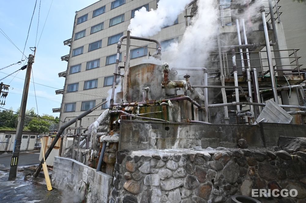 鐵輪溫泉區,是別府八湯中極具特色的一隅。這裡的街道上隨處可見溫泉蒸汽從地底噴湧而出,形成一幅如夢似幻的景象,空氣中瀰漫著硫磺的獨特氣味,卻也帶著一份溫暖與療癒。