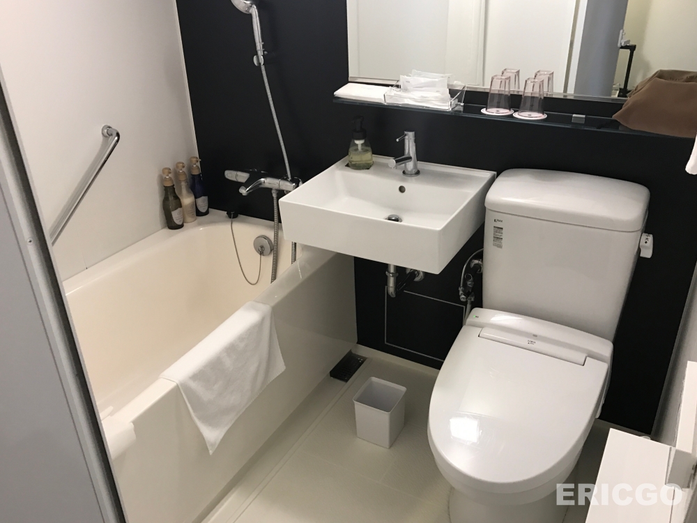 浴室簡單整潔、空間中等、備有免治馬桶、吹風機。 (Agoda房價查詢)