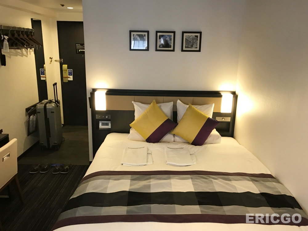 這次入住Mystays 心齋橋 HOTEL MYSTAYS Shinsaibashi Double Room雙人房,請注意日本商務飯店還有一種Semi Double 半雙人房,如果一個人是ok,兩個人就會比較擁擠,我還是喜歡 Double 雙人房,寬敞一些比較舒適!