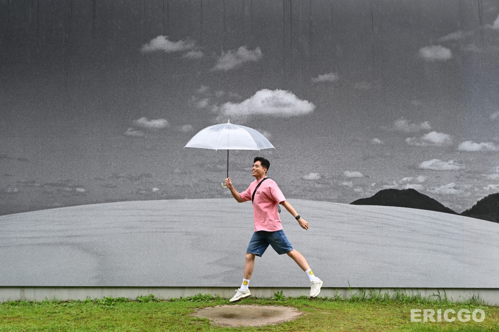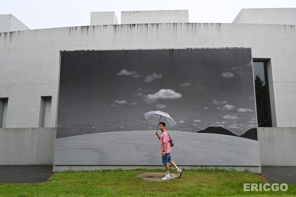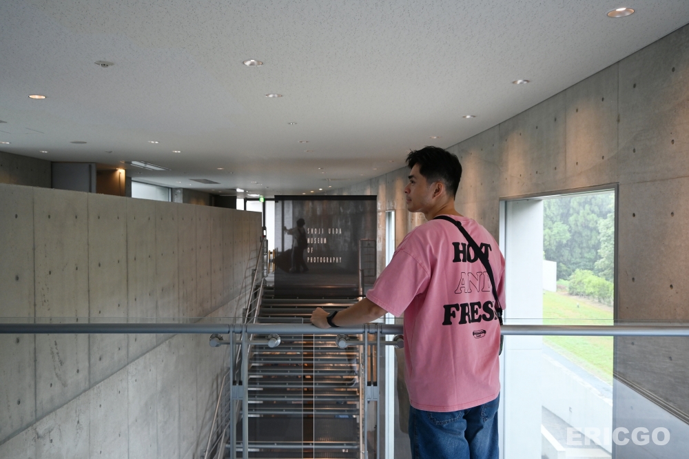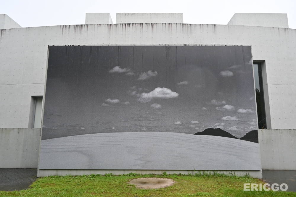 館內展覽禁止拍照!植田正治寫真美術館,不僅是展示作品的空間,其建築本身就是一件藝術品,與周遭自然環境完美融合。植田正治的攝影風格被譽為「植田調」,其特色在於他的作品常將人物或物體置於如同舞台般的背景中,營造出超現實感。照片中也常帶有童趣與幽默感,打破傳統攝影的嚴肅性。許多經典作品都是在鳥取砂丘拍攝,將廣闊的砂丘作為人物的舞台,創造出獨特的視覺效果。