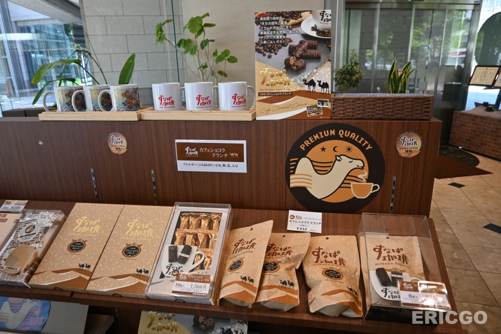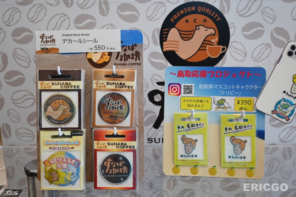 品嚐完砂場咖啡,別忘了在店內的伴手禮區逛逛!這裡販售著各式各樣與SUNABA砂場咖啡相關的周邊商品,是將鳥取獨特文化帶回家的最佳紀念品。喜歡砂場咖啡的風味,可以直接購買咖啡豆或濾掛包,在家也能重溫鳥取的美好。這也是送給親朋好友的實用禮物。
