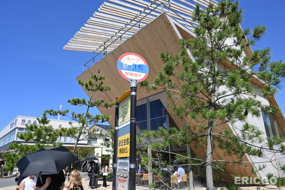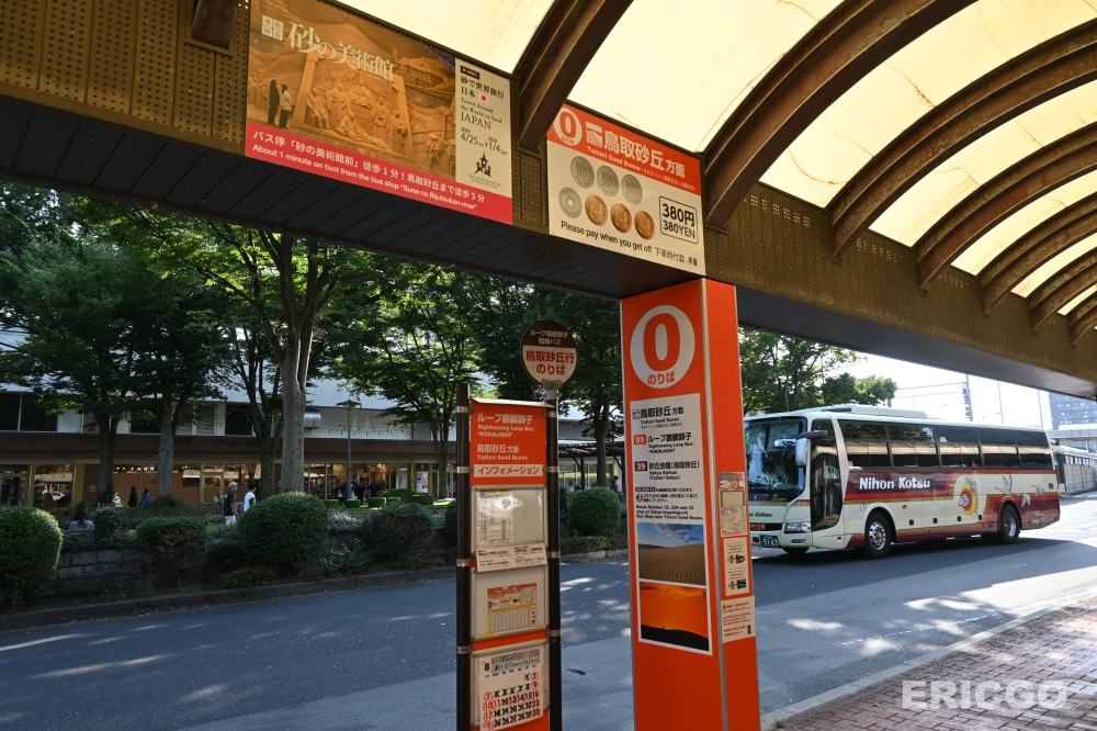 前往鳥取砂之美術館/鳥取砂丘非常方便,從JR鳥取車站出發,搭乘巴士是簡單便宜的選擇。在鳥取車站前的巴士總站,搭乘前往「鳥取砂丘」方向的路線巴士,於「砂丘會館(鳥取砂丘」站,車程大約25分鐘。