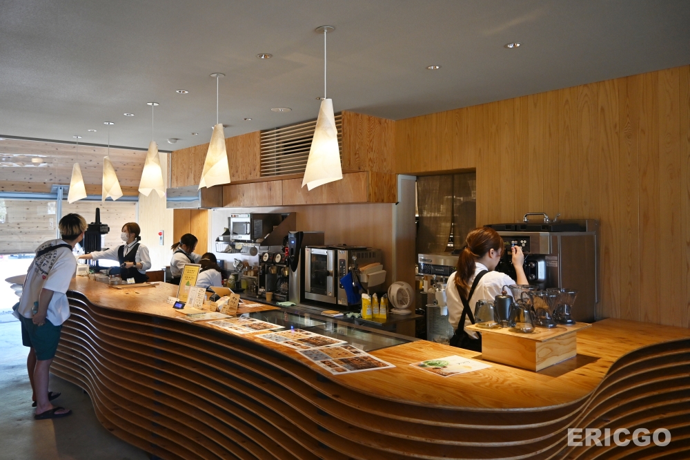 隈研吾大師巧妙地運用了光線與空間,營造出一個既開放又舒適的氛圍。室內空間的設計簡潔而富有層次感,木質的溫潤感與窗外的自然光線交織,無論坐在哪個角落,都能感受到一種寧靜與和諧。這不僅僅是一間咖啡廳,更是一件藝術品,名符其實地與大自然活生生上演一場對話。