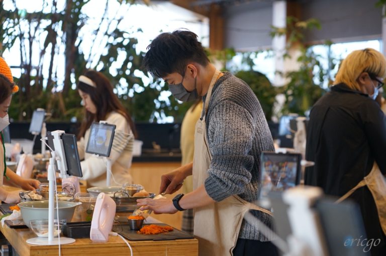 報名的時候可以提早備註,也可以有中文教學影片。跟著影片做其實真的很簡單,每一個步驟都有實際操作的示範,影片也都可以暫停、倒帶或重複觀看。第一個步驟就是削紅蘿蔔,再把紅蘿蔔刨成條狀跟切塊!