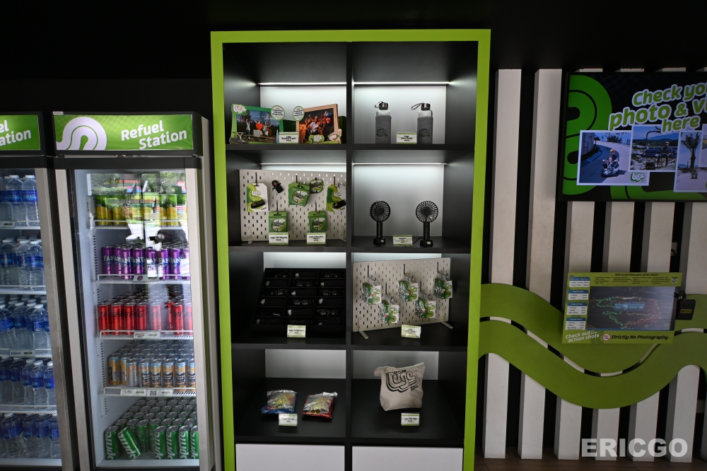 然後我們的安全帽上都有內置追蹤器,跑道上有設置許多台攝影機,捕捉大家飆速的畫面,掃描帽子就可以看到自己的照片或影片!喜歡的可以付費購買,為你的旅程留下實質的紀念,也能將這份飆速的快樂帶回家!