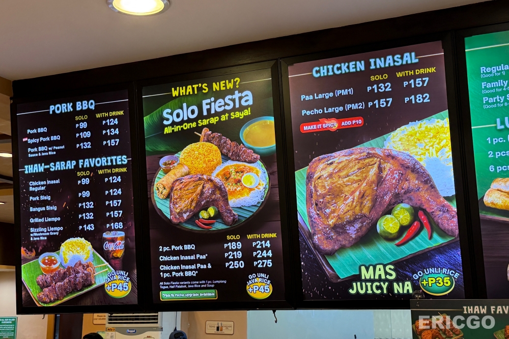 雖然Chicken Inasal烤雞是主角,但Mang Inasal的菜單上還有許多其他值得一試的選擇,讓你的味蕾之旅更加豐富!像我們這天就點了新推出的Solo Fiesta 269peso,裡面有烤雞Chicken Inasal、菲律賓特色美食Palabok(特色米粉)、飯、春捲的組合,一次可以嘗試到不同美味!