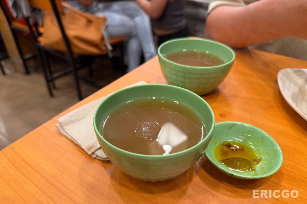 在用餐期間,還有服務人員會免費送上溫熱的「Sinigang Soup」酸湯,這種酸酸的湯品,清爽解膩,搭配烤雞和米飯真是絕配。