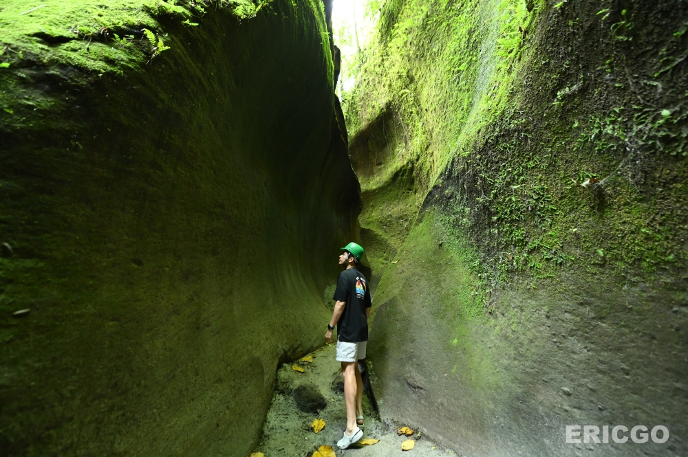走進 Tutulari Avatar Gorge,你會立刻感受到一股截然不同的氛圍。狹窄的峽谷通道,兩側是高聳的岩壁,被厚厚的綠色苔蘚和蕨類植物所覆蓋,名符其實的「綠色隧道」!