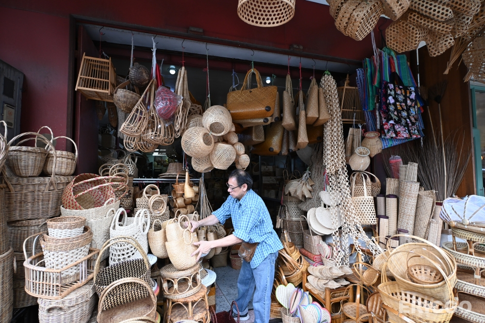 就在隔壁,一樣是老字號的「周桂發」,店內環境更能感受到濃濃復古風情,一樣提供各式各樣的藤編家具、包包、帽子,做工其實都精緻,許多款式都帶有獨特的設計感,藤編包包是大家必買的品項,款式多樣,絕對能找到您的心頭好。然後,當天我自己看中一款藤編包包,兩家訂價相差20泰銖,不妨貨比三家。
