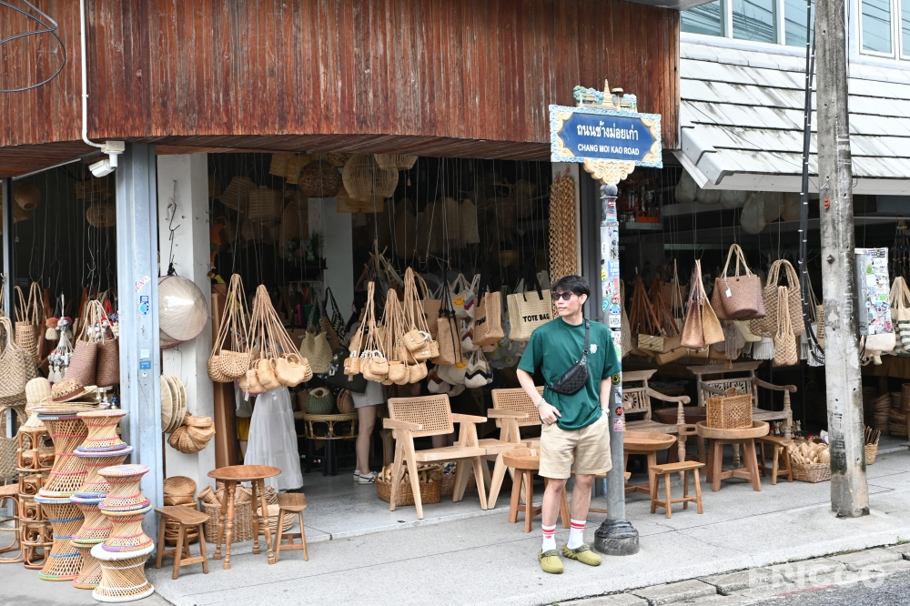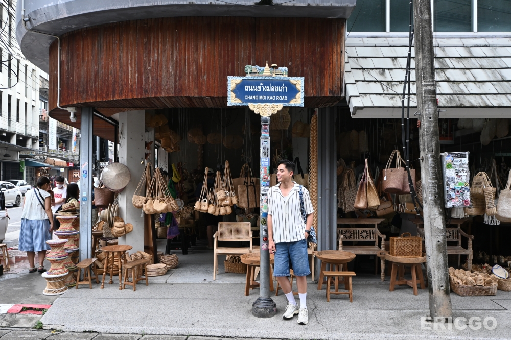 「Lee Heng Furniture」( หวายน้ำผึ้ง ช้างม่อย)門口的Chang Moi Kao Road 路牌,是來到藤編一條街除了購物外,必拍的打卡照片,以滿滿藤編產品作為背景,極具特色的泰國路牌,特別有「泰國感性」的味道,不管是外國旅客或是泰國當地的網紅網帥都要來拍一張!