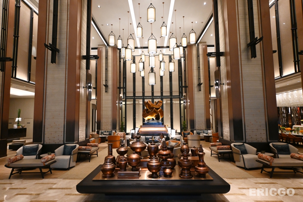 清邁萬豪飯店Chiang Mai Marriott Hotel的大廳風格非常優美,整體空間可見許多清邁古都蘭納王國的特色,懸掛的燈籠吊燈、大廳中央的古錢幣藝術裝置,金銅色調低調奢華不顯俗氣,走進大廳就能感受到不同凡響的五星級氣派。另外,清邁萬豪飯店的工作人員也相對非常專業細心,入住這幾天多次經過大廳都能感受到訓練有素的星級服務品質。(優惠房價查詢)