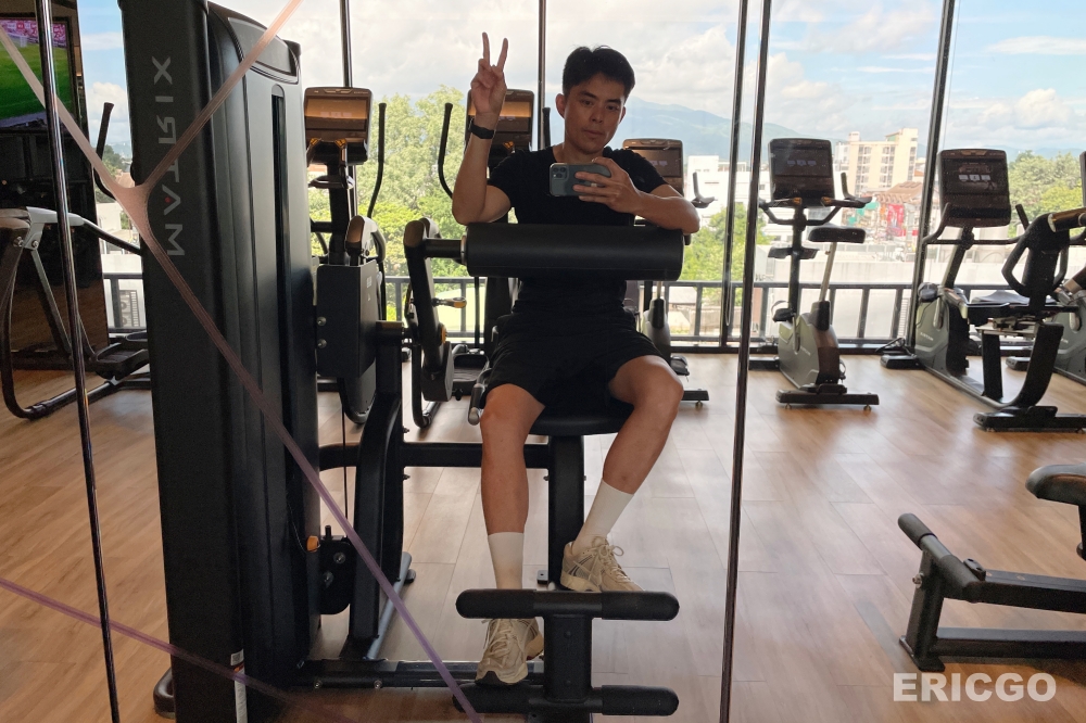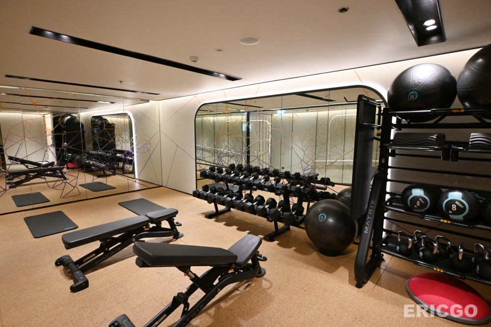 清邁萬豪飯店的健身房則相對寬敞而且設施非常齊全,一字排開的有氧器材及重量訓練器材,並設有獨立的啞鈴訓練室,換洗空間中並設有男女獨立的小型桑拿烤箱。(優惠房價查詢)