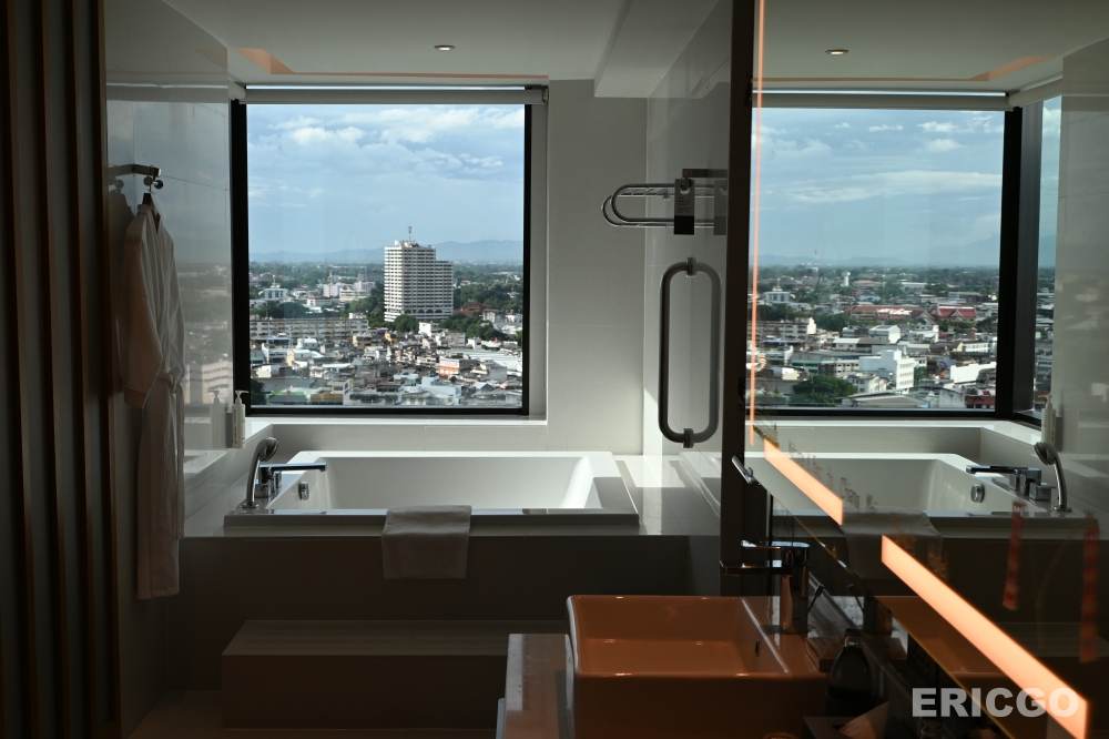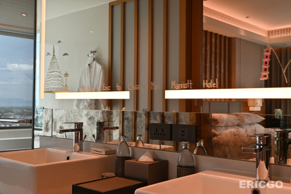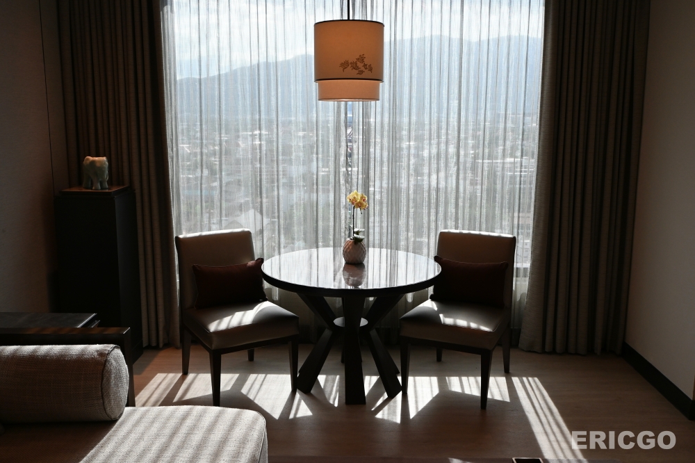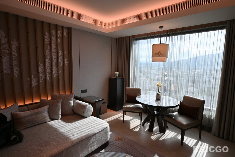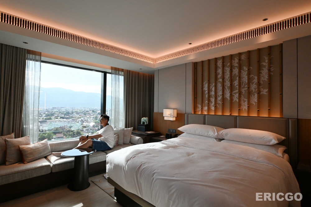 清邁萬豪飯店Chiang Mai Marriott Hotel 行政套房Executive Suite無疑是我在清邁住過最為舒適最為喜愛的五星級飯店套房,整體空間約72平方公尺,格局方正,完整規劃臥室、客廳、浴室、廁所、行李衣物間等空間,客房及浴室內即可享有超過180度的高空景觀,坐擁清邁素帖山(Doi Suthep)山嵐美景,空間內充滿低調的泰式元素,設計極為優雅。(優惠房價查詢)
