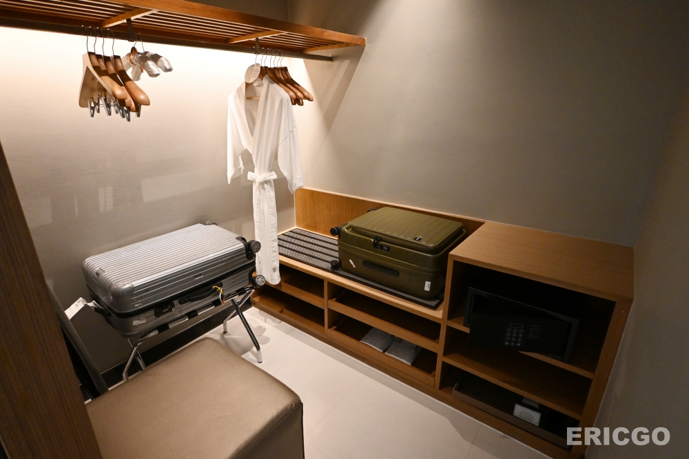 獨立廁所、獨立大型衣物間備有浴袍、行李櫃、保險箱、熨斗及燙衣板。(優惠房價查詢)