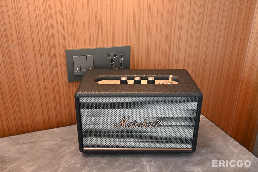 臥室內設有第二台電視、窗邊貴妃沙發躺椅,配有Marshall音響。